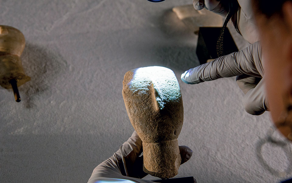 Φωτ. ΑΠΕ – ΜΠΕ: Ερυθρόμορφα αγγεία με σκηνές από την τελετή των Ανθεστηρίων (420 π.Χ.) και ηθμοειδές θήλαστρο (100-86 π.Χ.), ευρύματα που βρέθηκαν στο έργο της Αττικό Μετρό «Επέκταση της Γραμμής 3: τμήμα Χαϊδάρι-Πειραιάς»