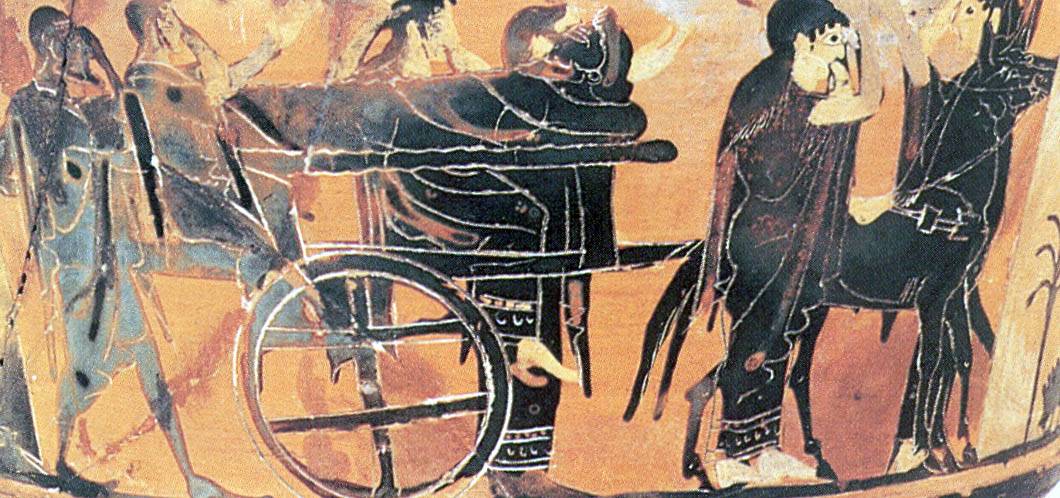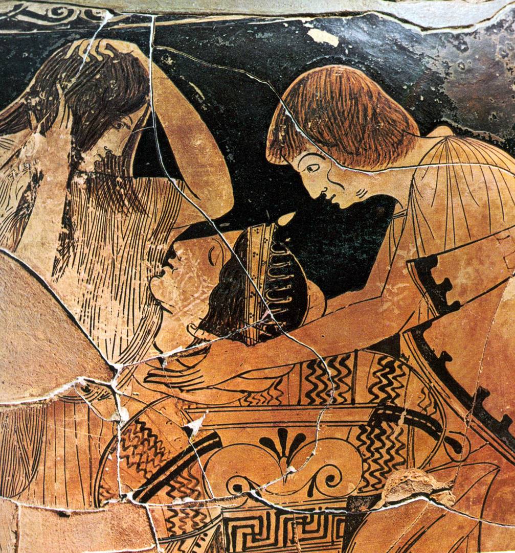 Μερικές φορές ο νεκρός πήγαινε στον τάφο μέσα σε φέρετρο. Σε αγγείο των αρχών του 5ου π.Χ. αιώνα στο Brunswick των Η.Π.Α., έχει σωθεί μια σκηνή που μας μεταφέρει, με σπάνια αμεσότητα, τις στιγμές τής συγκινησιακής έντασης, πριν από την εκφορά.